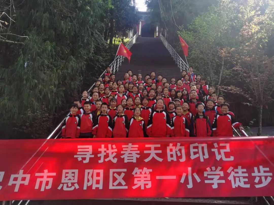 四年级至六年级举行“寻找春天的印记”徒步活动。孩子们整装待发,一路高歌向前。一路上,老师给同学们讲述了义阳山的故事,“斩巴蛇”“王郎读书”“五子登科”的故事让孩子们听得津津有味。虽路途遥远,但是一小学子凭借吃苦耐劳的精神,无一人掉队。
