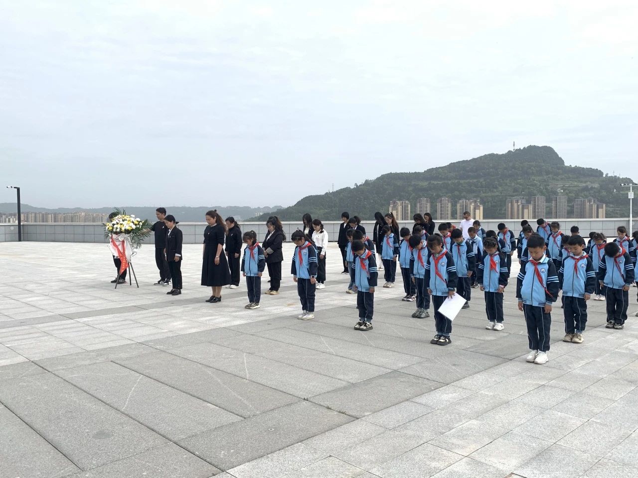 全体师生绕着烈士陵墓一周,敬献手中的鲜花。一朵朵洁白的花朵,象征着先辈心灵的纯洁无暇,象征着先辈崇高的品质和无私的精神。