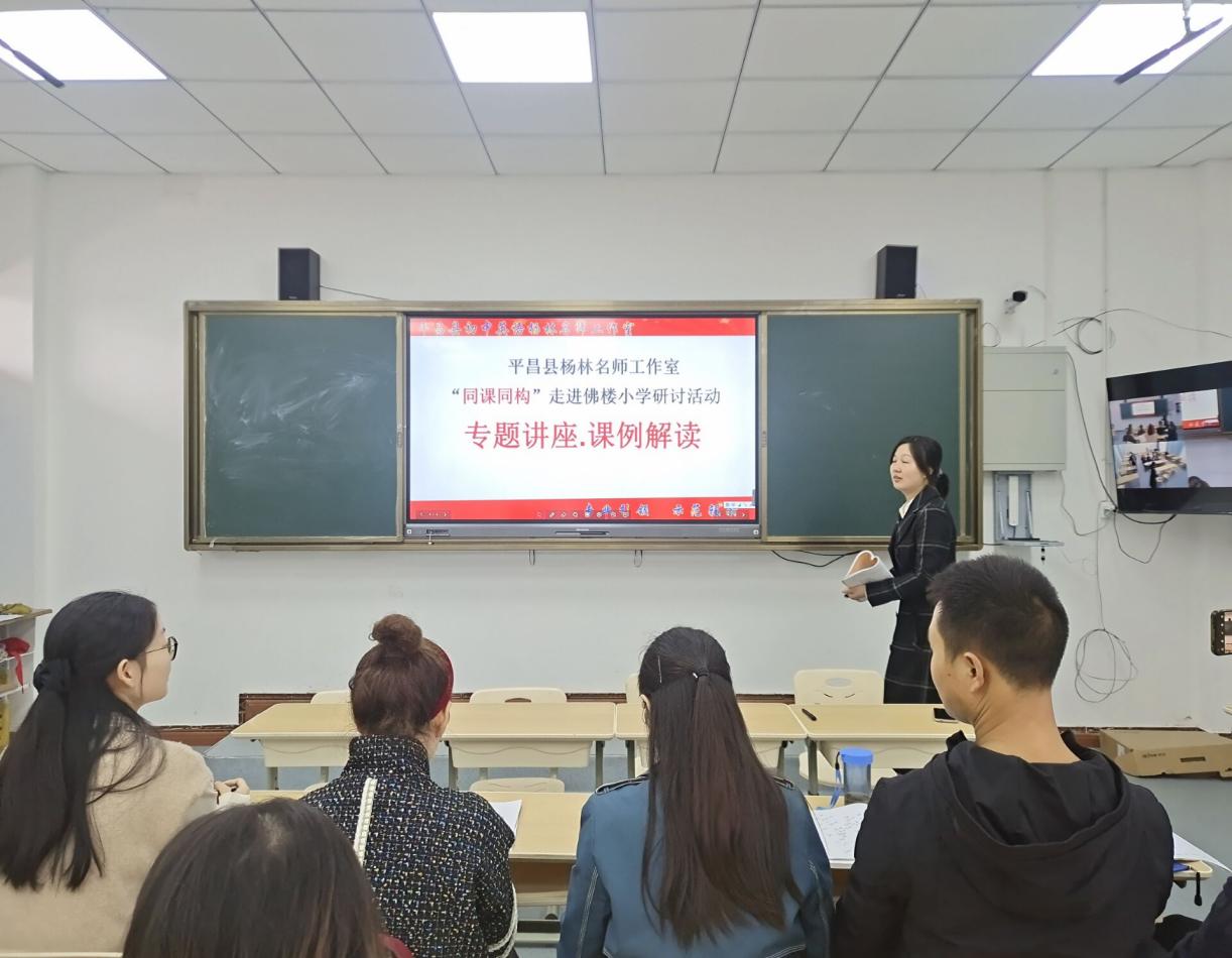 (本网讯)为深化英语学科阅读教学的研究,提升阅读的核心素养,充分发挥名师的示范、引领和辐射作用,帮助农村初中英语常规课堂教学水平的提升,提高薄弱农村初中英语教师的教学能力以适应新课程标准下的英语教学要求,构建高效课堂。10月19日,平昌县杨林名师工作室在我校开展了送教下乡活动,工作室部分成员和佛楼小学英语老师参与了此次活动。