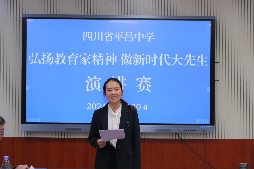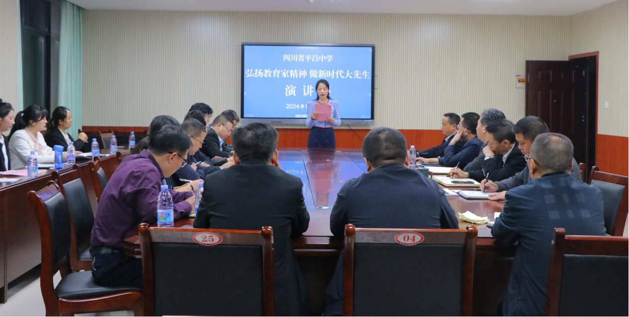为深入贯彻落实教育方针,弘扬教育家精神,激励广大教师争做新时代的“大先生”,2024年10月30日,四川省平昌中学在学校综合楼421会议室成功举办了以“弘扬教育家精神,做新时代大先生”为主题的演讲比赛。