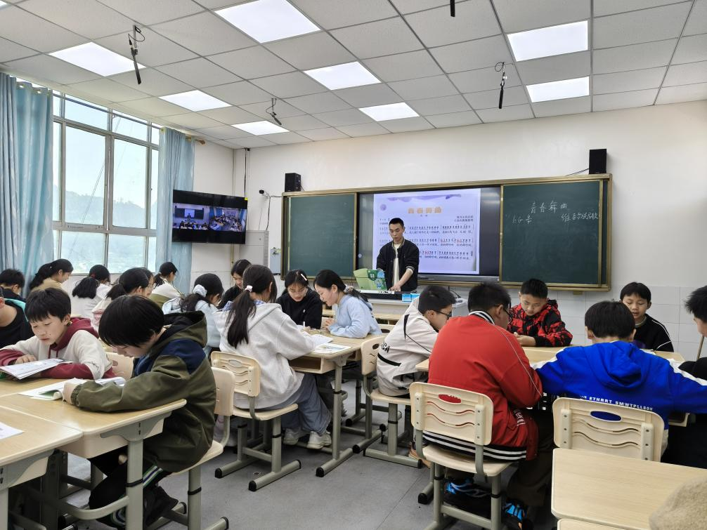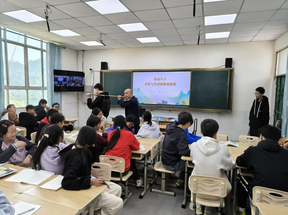 《劳动号子》课堂上,镇龙中学苟正华老师运用多媒体展示了一幅幅劳动场景的老照片,并播放了不同类型劳动号子的音频片段,让学生直观感受到劳动号子与劳动实践的紧密联系。课堂模拟劳动场景,学生们分组喊着号子,体验号子在劳动中统一节奏、鼓舞士气的作用,深刻领会劳动人民在艰苦环境中展现出的坚韧精神。