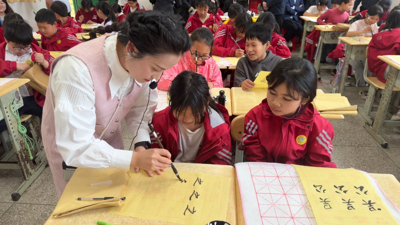 4月15日,恩阳区教育考试院到尹家小学开展书法教育送教下乡活动。