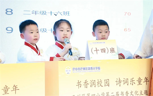 近日,巴中市巴州区第四小学校(巴中市巴州区晏阳初实验小学)第二届少年诗词大会在津桥湖报告厅举行。来自二至五年级的“小诗人”齐聚一堂,以诗会友,用琅琅书声点亮了整个春天。
