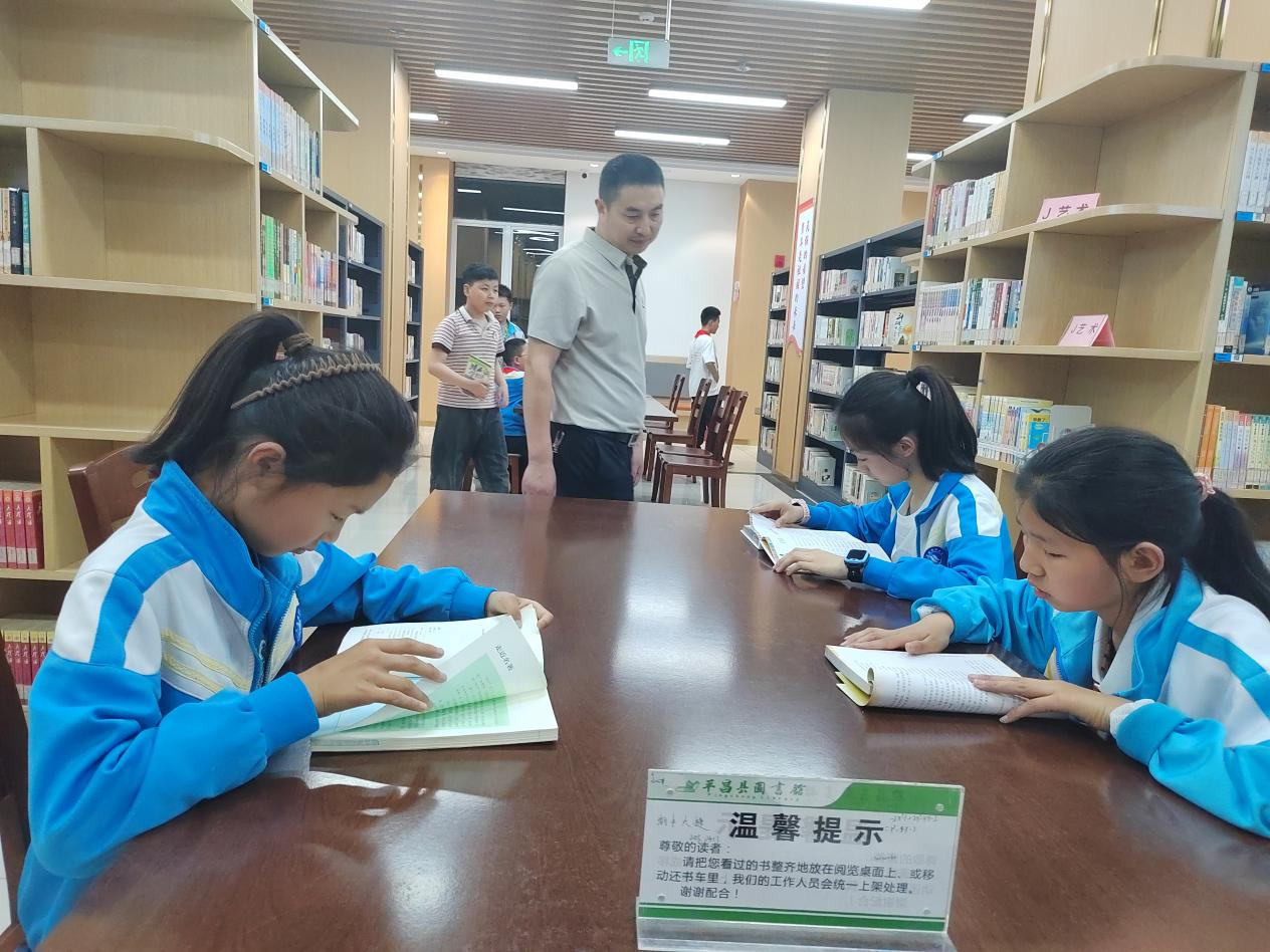 午后,由每班选派5名学生走进县图书馆,开启“一书一世界”研学之旅:同学们在干净整洁满是书香的图书馆里享受沉浸式阅读,孩子们挑选书籍静心阅读,畅游在书的海洋,尽情汲取知识的养分。