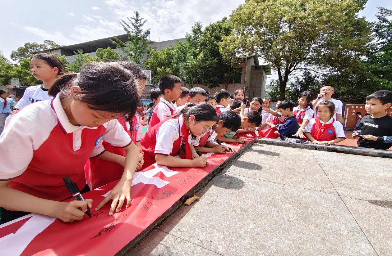 宣誓完毕,签名活动有序开展。4 - 6年级每班选派10名学生代表,整齐列队来到写有“预防溺水,安全‘童’行”的横幅前,郑重地签下自己的名字。一个个名字,代表着一份份承诺,彰显着学生们对生命的尊重和对防溺水的重视。