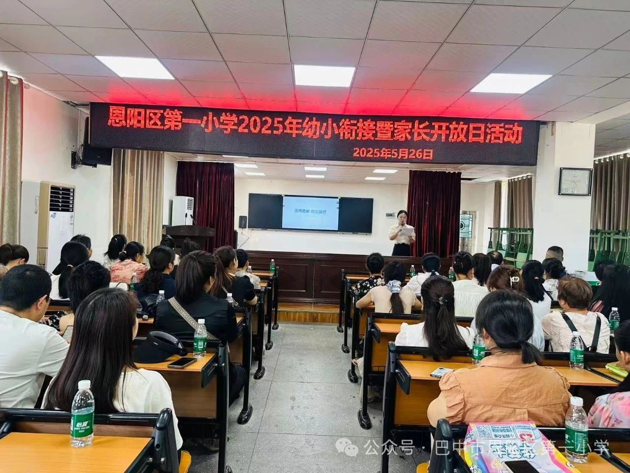 2025年5月26日上午9:00,阳光明媚,恩阳一小附属幼儿园大班的家长们齐聚校园,参加2025年春幼小衔接暨家长开放日活动。这不仅是家长与老师的相聚,更是为孩子们即将开启的小学生活奠基,让家长们深入了解学校教育理念与校园文化的盛会。