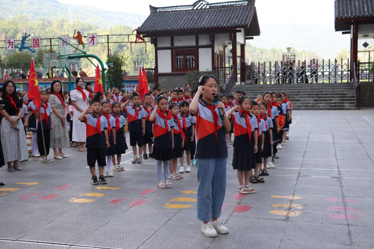 伴随着激昂的出旗曲,护旗手们步伐整齐,高举队旗庄严入场。全体少先队员行队礼,目光坚定,展现出对少先队组织的崇敬。副校长李建英宣读新队员名单后,老队员们手捧红领巾,细心地为新队员佩戴。当鲜艳的红领巾飘扬在胸前,新队员们挺直腰板,回敬队礼,这一刻,红色精神的传承在两代队员间无声传递。