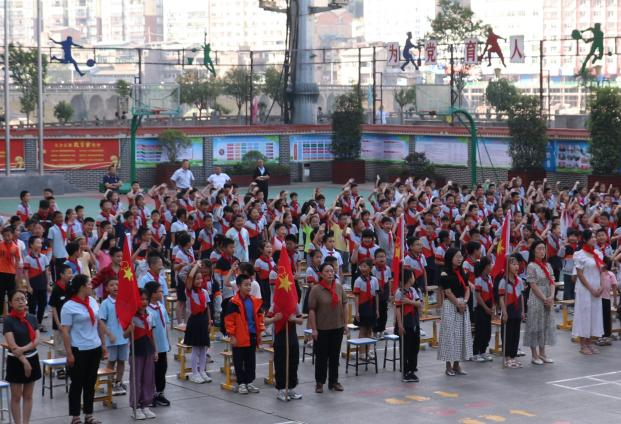 在六一国际儿童节来临之际,平昌县第三小学于5月28日举行2025年少先队新队员入队仪式。38名一年级学生光荣加入中国少年先锋队。