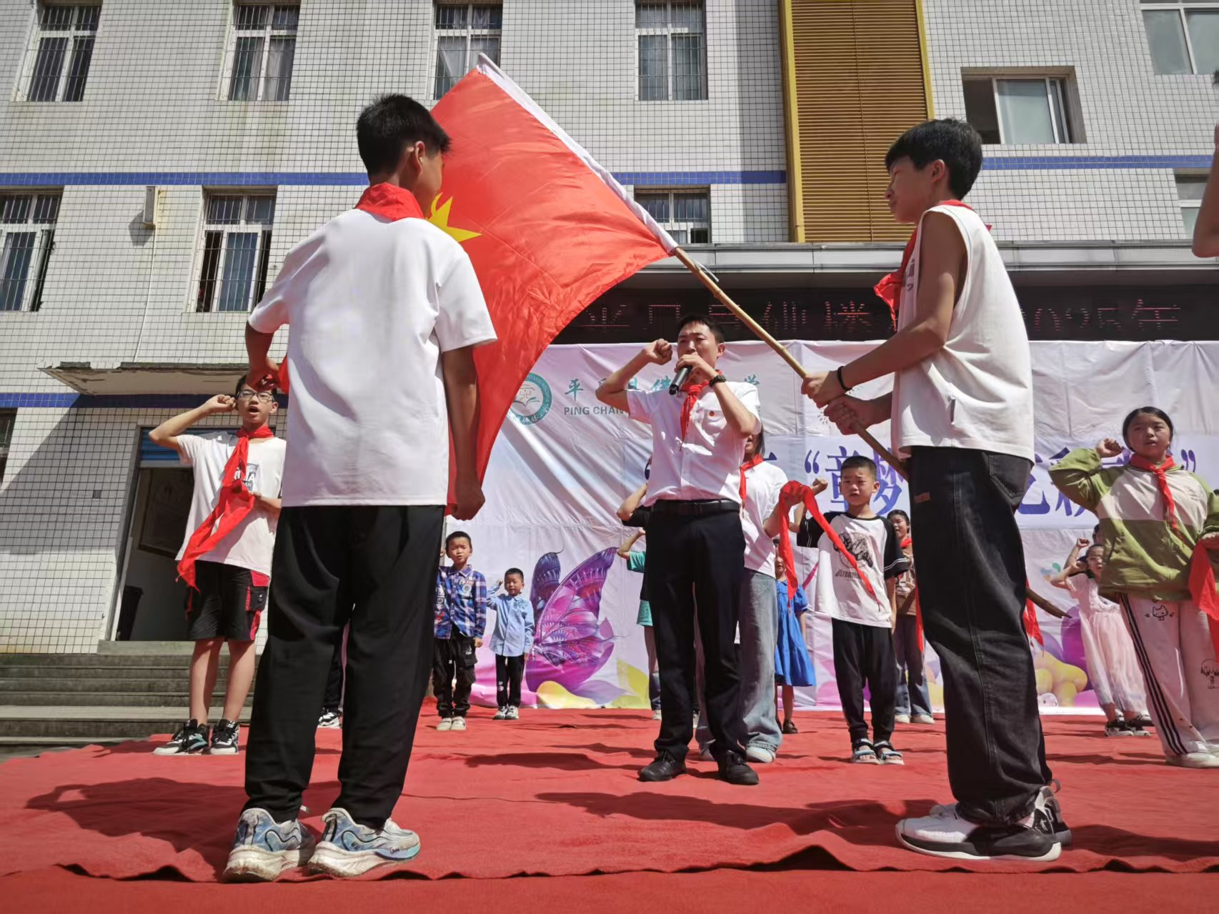 2025年5月29日,平昌县佛楼小学以“法治启蒙·红色传承”为主题,为一年级新队员举办少先队入队仪式。