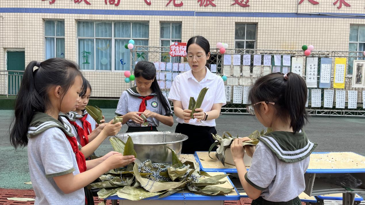 在"舌尖上的端午"专区,五年级学生现场展示包粽子技艺,折叶、填米、缠线一气呵成。家住南坝镇的家长李女士带着女儿参与活动后感慨:"这样的活动既让孩子学到技能,又增进亲子感情,比单纯吃粽子更有意义。"