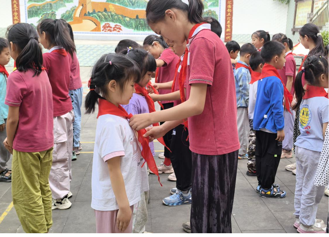 在高年级少先队员的帮助下,新队员佩戴上鲜艳的红领巾。他们挺直胸膛,右手握拳,在大队长的带领下庄严宣誓:“准备着,为共产主义事业贡献力量!”稚嫩而坚定的声音回荡在校园,展现了新时代少先队员的昂扬风貌。