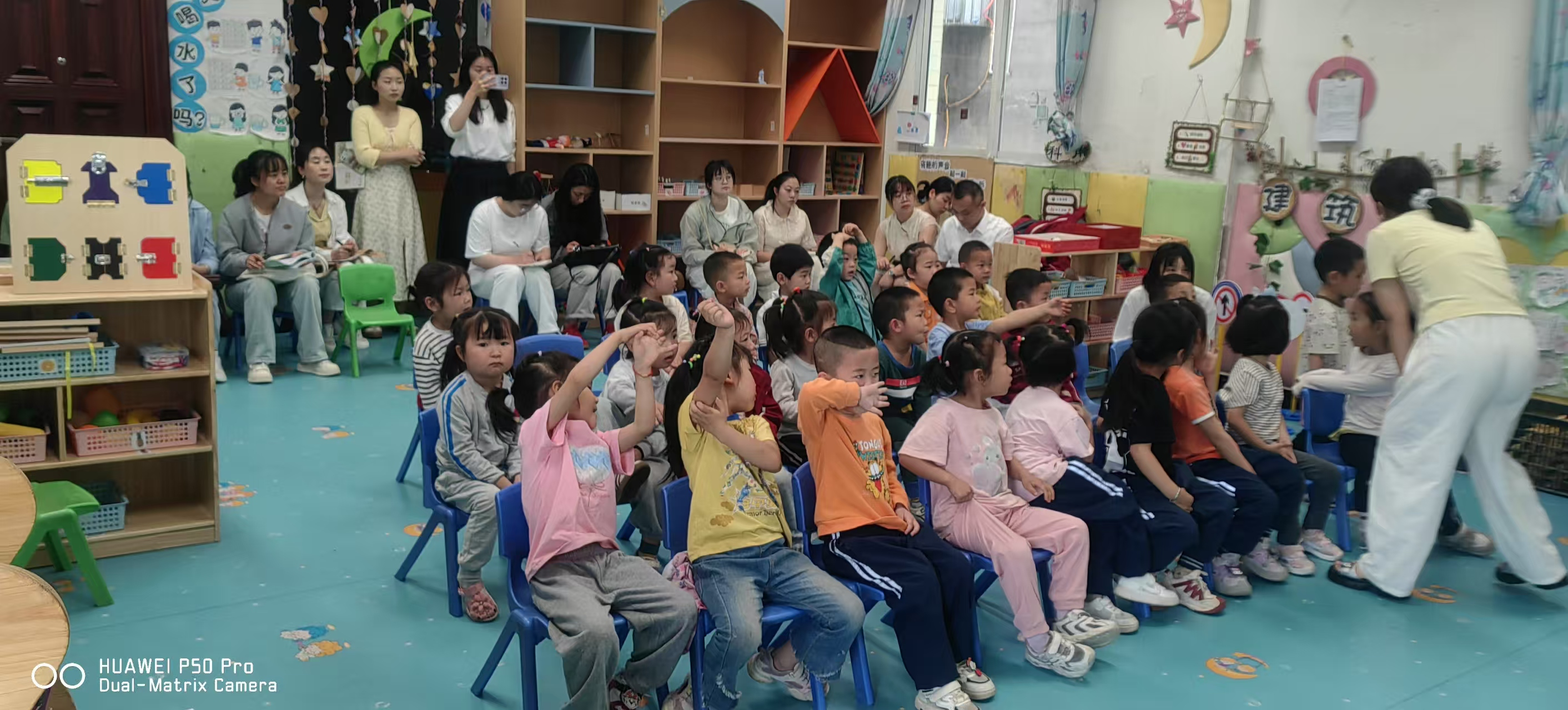 活动中,小天才幼儿园主班教师胡静、副班教师段圆圆与保育教师徐金凤进行了一日活动流程实操展示。从8:00幼儿入园晨检、晨间活动开始,到11:10就餐活动结束,涵盖早操、自主生活、艺术领域集教等环节,全方位呈现规范有序的幼儿园一日活动。随后的校共体经验分享与交流环节,教师们围绕保教保育实际问题开展案例研讨,各抒己见,共寻解决方案,实现经验与智慧的深度交流。