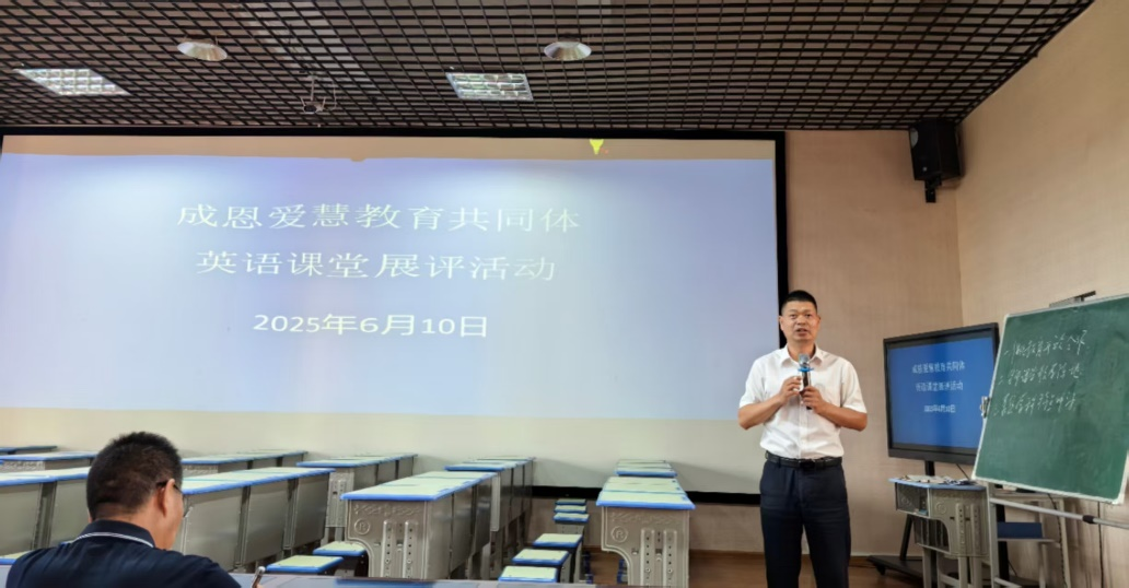 教研员陈翰林老师在评析中指出,“教无涯,研不止”,教与研如同教学的双翼。他高度评价此次活动不仅是教学技能的展示,更是一场教育理念的深度碰撞,为区域英语教育高质量发展注入了强劲动力。陈老师勉励全体英语老师,立足课堂、超越课堂、创新课堂,拒绝“拿来主义”,积极践行新课标理念,架设学习与生活的桥梁,做好学生的引路人。他呼吁各共同体学校持续依托平台优势,深耕英语教学研究,让教研之火持续燃烧,助力教育教学质量稳步攀升。