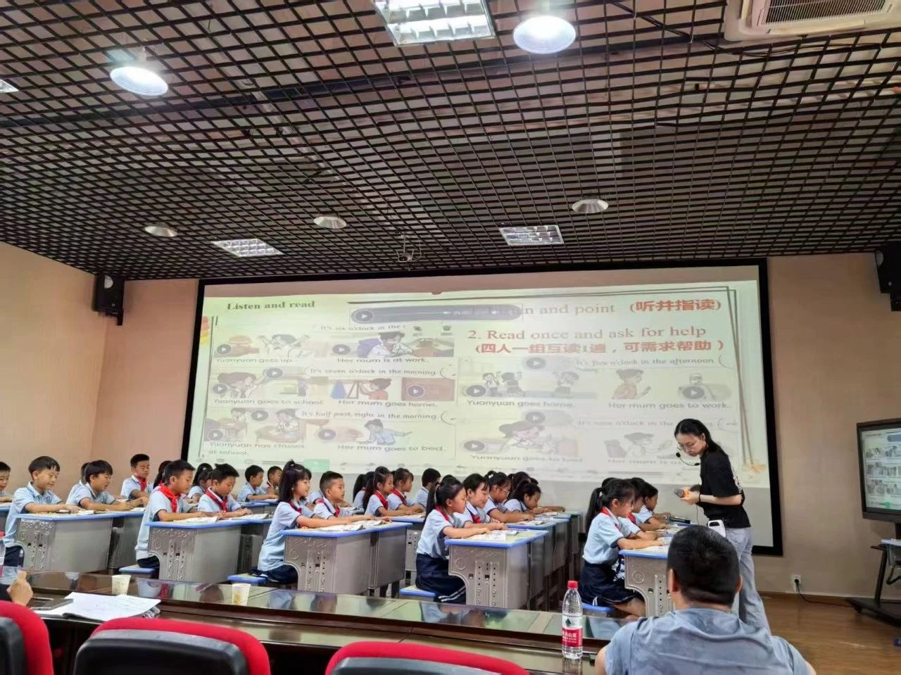 参赛教师们精心设计导入活动:有的采用结构化问题驱动教学,引导学生带着明确任务去阅读、聆听和理解;有的运用图片环游法,引领学生逐图解析文本,再进行深度阅读、听力训练和实际应用。五节课均充分体现了以学生为中心的理念,关注单元整体教学,灵活运用师生导学、师生共学、小组合作等多种学习方式,将课堂主动权交还给学生,生动诠释了新课改背景下小学英语课堂的新样态。尤为可贵的是,老师们巧妙地将教学内容从课本中Yuanyuan和妈妈的时间表,自然过渡到学生自己父母的工作日常,引导孩子们理解父母的辛劳,学会关爱父母。