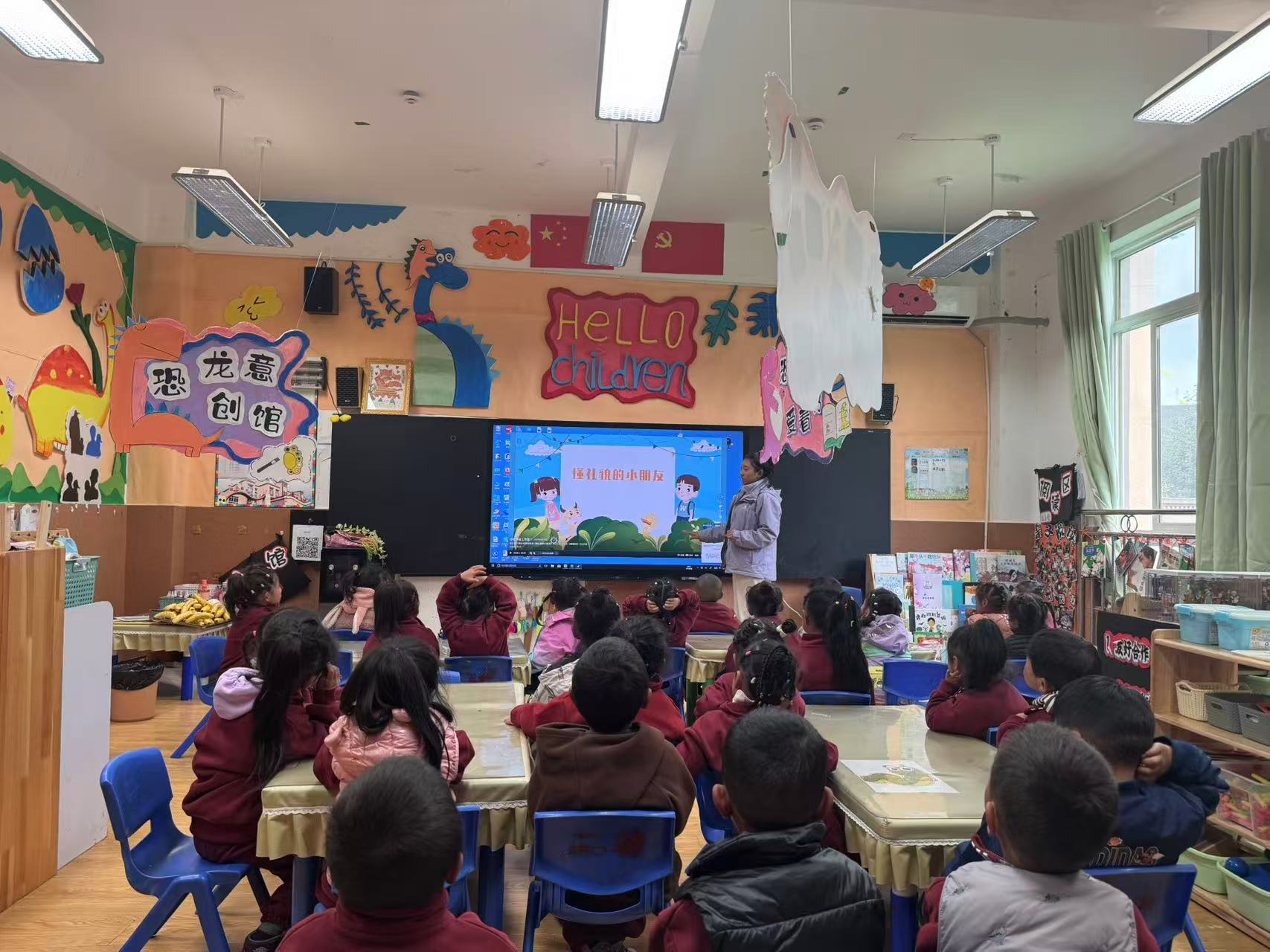 理塘县第二幼儿园针对幼儿认知特点,以“趣味化启蒙”为重点开展开学第一课。通过动画、红歌学唱传递爱国情感;借助绘本故事、情景模拟培养幼儿礼貌、分享习惯;结合本地生态,用图片、视频讲解森林草原防火知识;组织消防模拟逃生演练,教幼儿识别消防器材,还根据不同年龄段开展法治启蒙,大班听故事、中班看图文、小班看动画,让安全、品德、法治意识从小扎根。