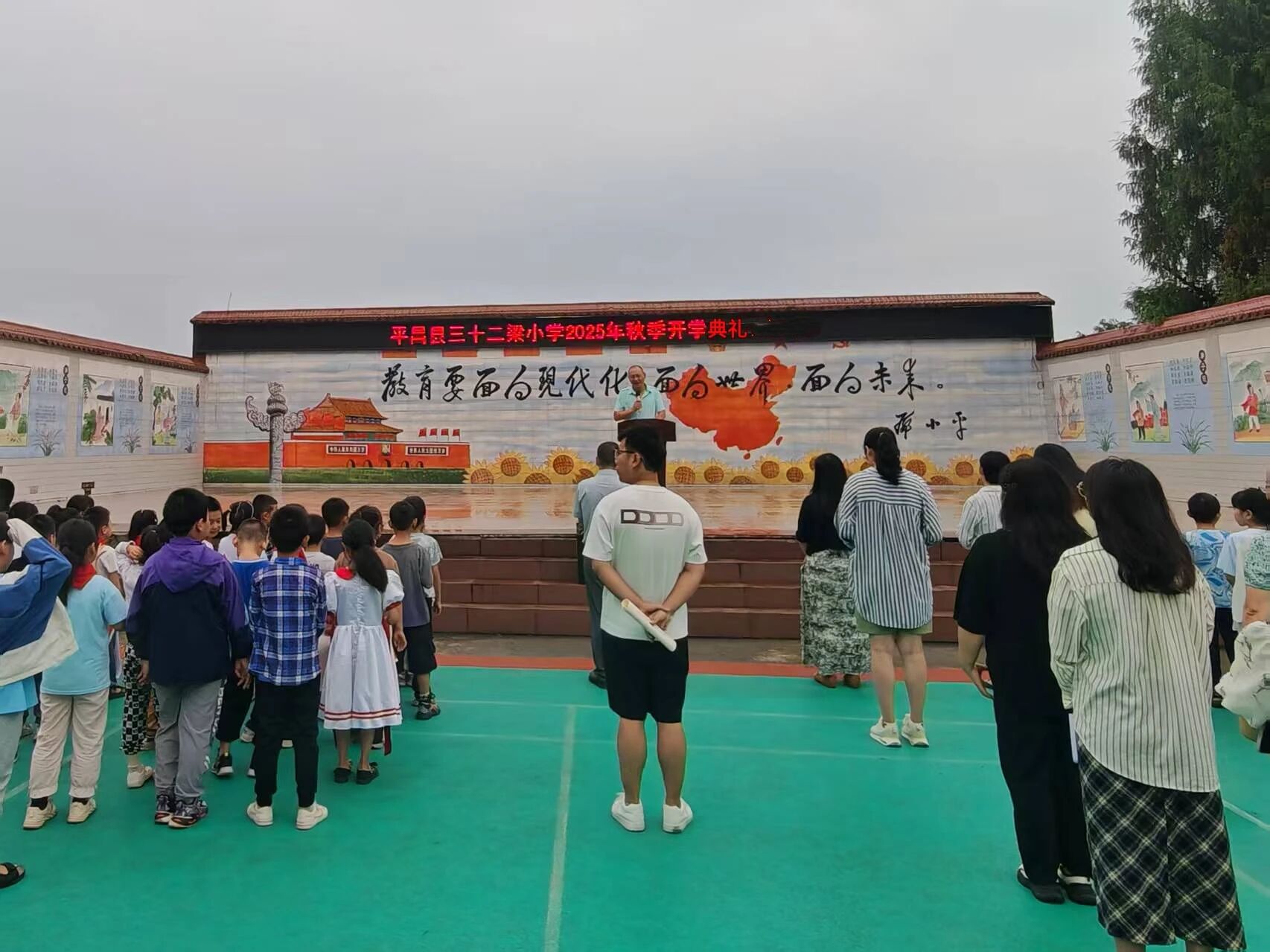 在雨后初霁的清新氛围中,三十二梁小学全体师生满怀憧憬齐聚校园,共同迎来了2025年秋季开学典礼。这场别开生面的开学典礼,以其丰富的环节、真挚的寄语,为师生们开启了充满希望的新征程。
