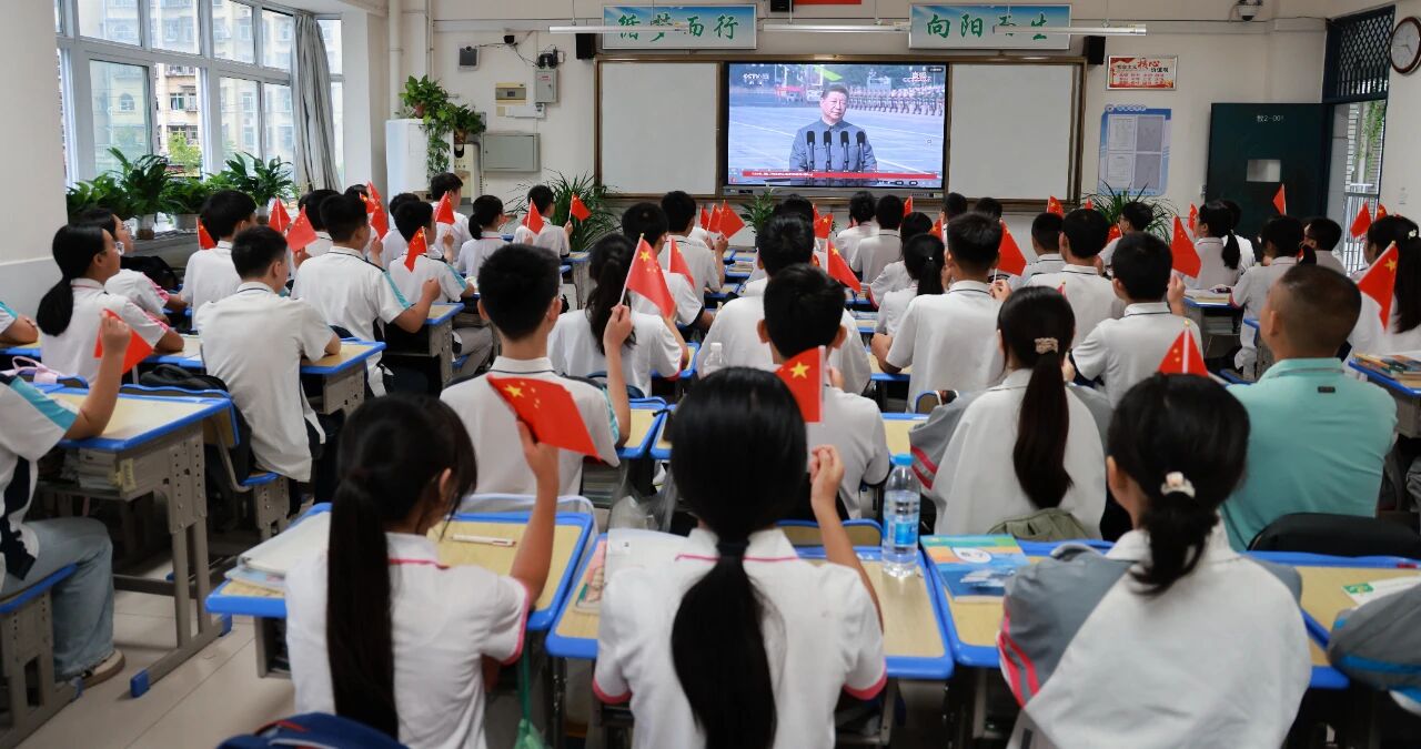 9月3日上午,巴州区第四中学分别在会议室、学术报告厅和各班教室,组织全校师生和全体保安、宿管人员、保洁人员,集中观看了纪念中国人民抗日战争暨世界反法西斯战争胜利80周年阅兵仪式直播。