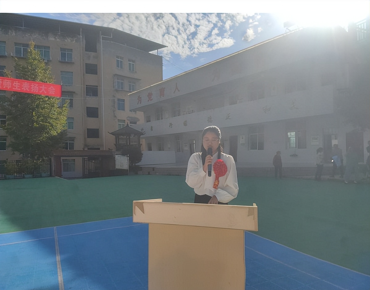 表扬过后,师生代表依次发言,传递心声与期许。学生代表结合自身学习经历,表达了对老师的感恩之情,承诺将以“学习之星”“纪律之星”为榜样,勤奋学习、遵规守纪,用优异成绩回报老师与学校;教师代表则分享了教育工作中的感悟,她表示将珍惜“优秀教师”荣誉,继续以爱心、耐心和责任心深耕教学,助力每一位学生成长成才,话语间满含对教育事业的热爱与担当。