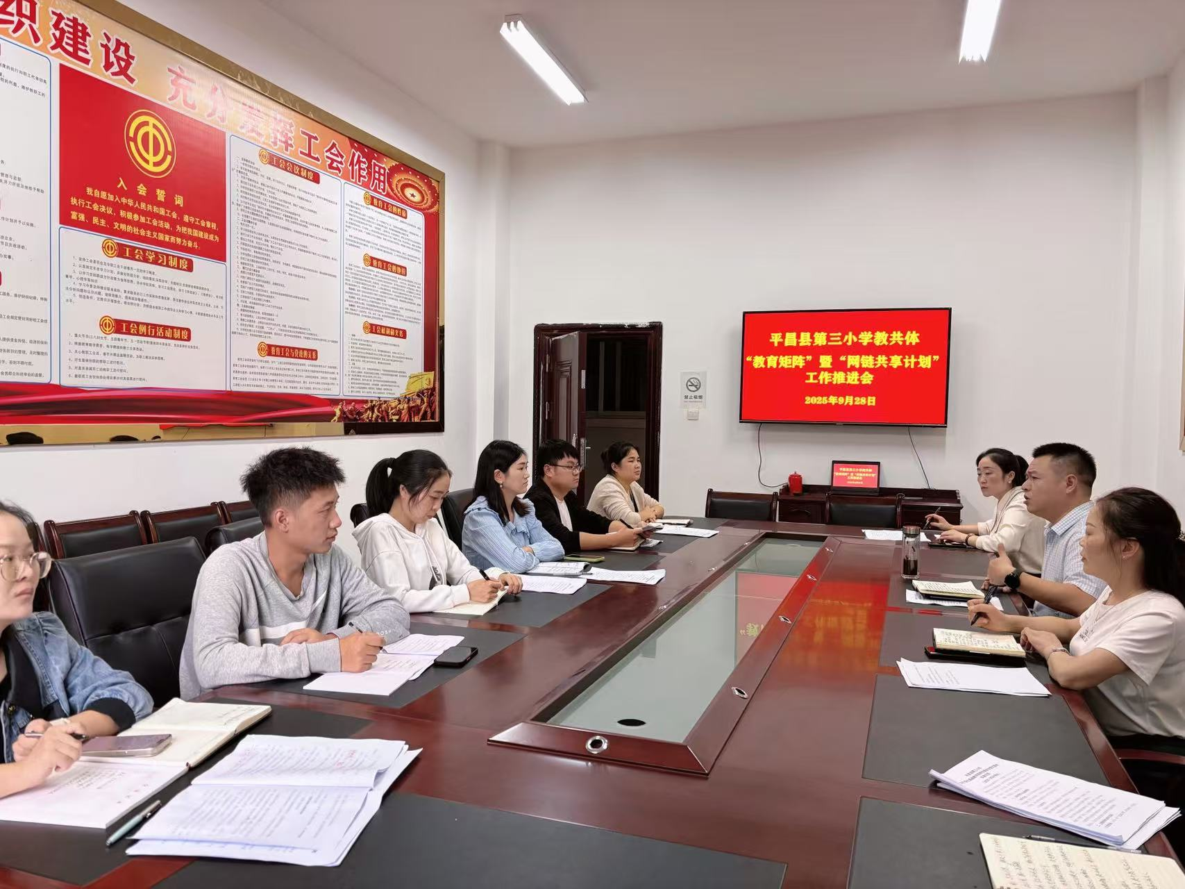 9月28日下午,平昌县第三小学召开基础教育矩阵发展暨“网链共享计划”工作推进会。学校各学科教共体负责人参加会议,会议由分管教学副校长李建英主持。