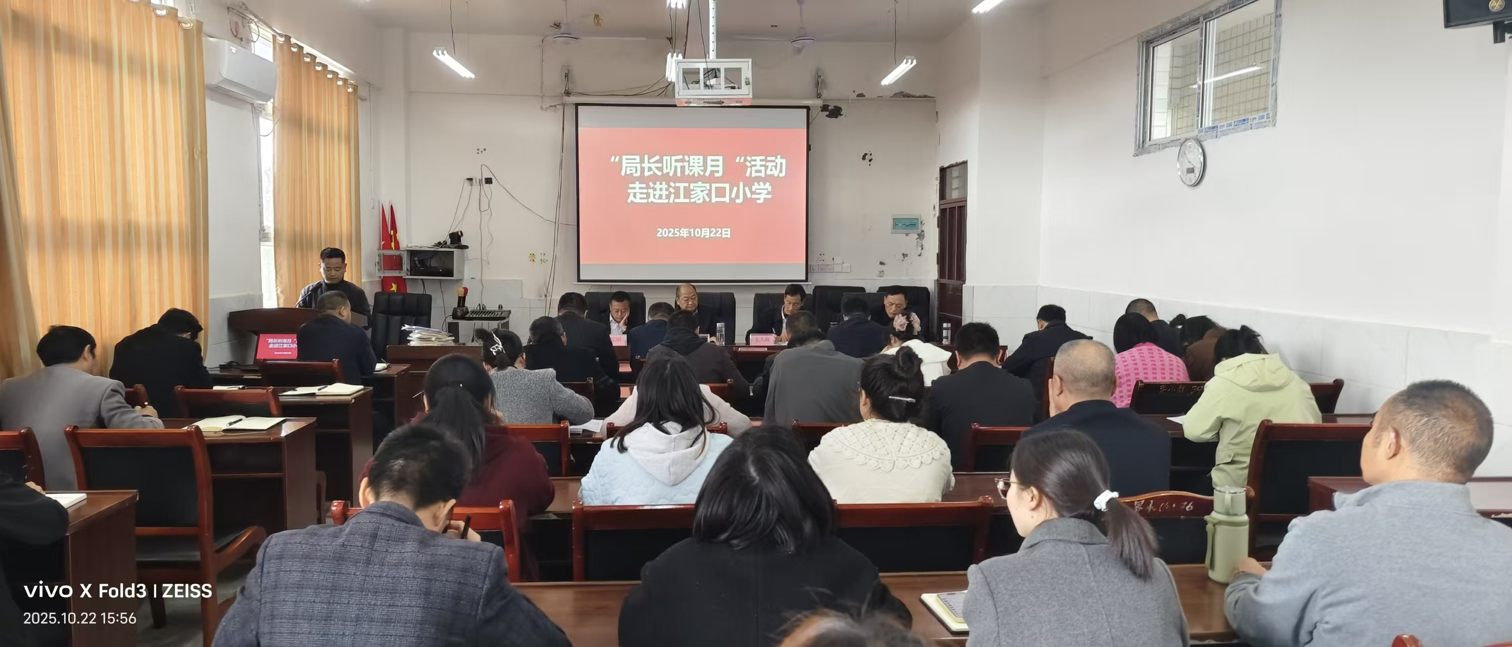 金秋十月,硕果盈枝。2025年10月22日,“局长听课月”活动如一股暖流,浸润着江家口小学美丽的校园。本次活动集听课、评课、环节督查与教学管理督查于一体的教育盛会。学区督导站领导携各校校长、分管副校长、教导主任及骨干教师齐聚一堂,以督查促提升,以交流谋发展。活动不仅聚焦教学实效,更如春风化雨,滋养着乡村教育的沃土。
