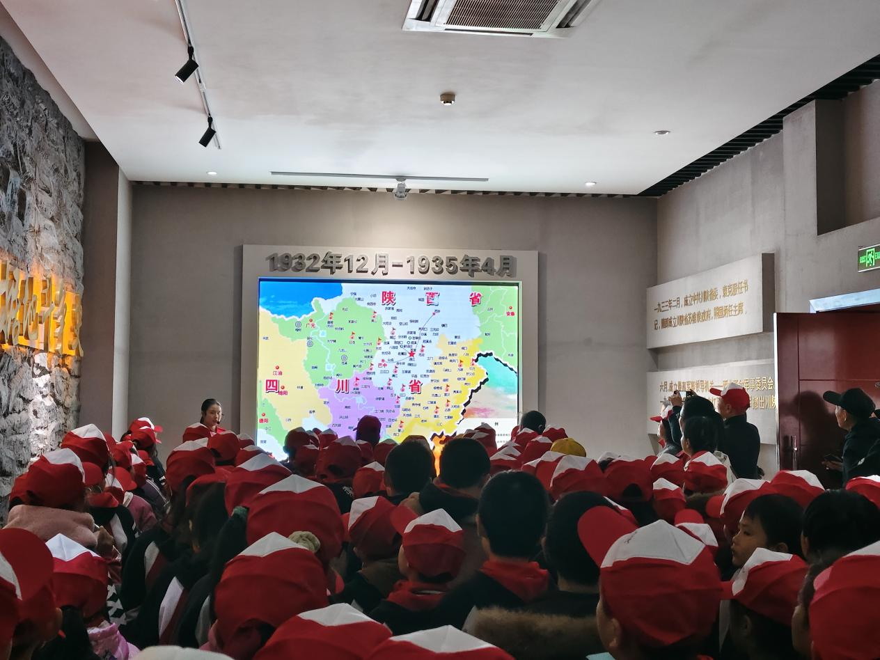 刚踩上川陕革命根据地博物馆的石阶,喧闹忽然轻了。玻璃展柜里,那双磨得只剩麻筋的红军草鞋,让几十颗小脑袋攒成“绒绒的蘑菇丛”:“这草鞋,真的能踩过雪山吗?”讲解员的声音裹着岁月传来,指尖落在战役地图的褶皱里,将士们裹着单衣冲锋的身影,顺着同学们的目光,“撞”进了他们发亮的眼睛里。“原来我们的暖被窝,是他们用冻裂的脚‘踩’出来的!”有孩子攥紧了衣角,声音轻轻却发着颤。