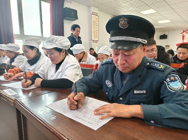在师德师风答题测试环节,活动采用闭卷形式,并由工会设立3名监考人员进行监考,试题涵盖《新时代中小学教师职业行为十项准则》、教育法律法规、师德师风核心要求等内容,同时结合食堂工人、保安等临聘岗位特点,融入服务规范、安全职责等针对性考点,全面考察全体人员对师德师风知识的掌握程度。测试过程中,全体参与者严格遵守考场纪律,专心审题、细致作答,展现出良好的职业素养与学习态度,达到了“以考促学、以学促行”的活动目的。