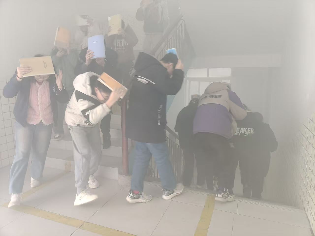 演练前,学校制定了周密的方案并进行了宣传教育。当警报响起,各班学生在老师指挥下,按照预定路线,弯腰捂鼻,快速、有序地从各楼层撤离至操场安全区域。整个过程紧张有序,用时短、效率高。