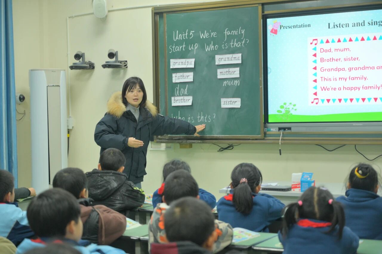 英语课堂上,花丛小学岳书帆老师创设情境,融合视频科普,帮助学生掌握核心方位用语。带领四年级学生畅游在《Where does she go?》的对话中。三星小学张榆苓老师的三年级课堂《We are family Get ready & start up》,她以《小猪佩奇》导入三年级家庭主题课,联系生活实际。区二小刘晓梅老师通过歌曲导入三年级《An apple for two》,让孩子们深入角色,在老师的层层引领下,逐步突破了语言和知识的各个屏障。