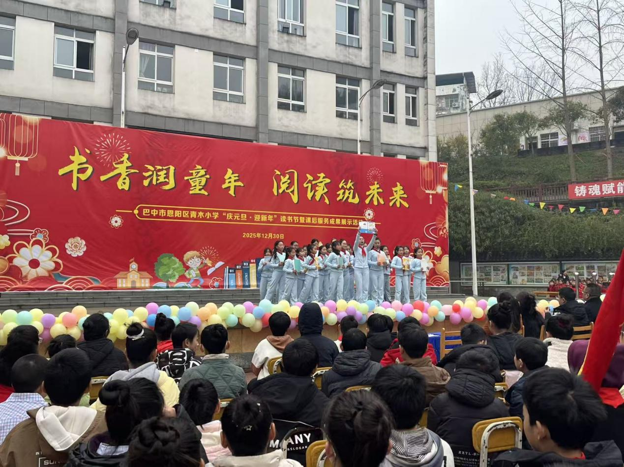 墨韵迎新岁,书声启华章。为深入推动“书香校园”建设,营造爱读书、读好书、善读书的校园文化氛围,2025年12月30日上午,恩阳区青木小学隆重举办了以“全学科阅读”为主题的读书节展示活动。本次活动旨在通过多元化的阅读成果展示,引领师生与经典同行,伴书香成长,在校园内播撒智慧的种子。