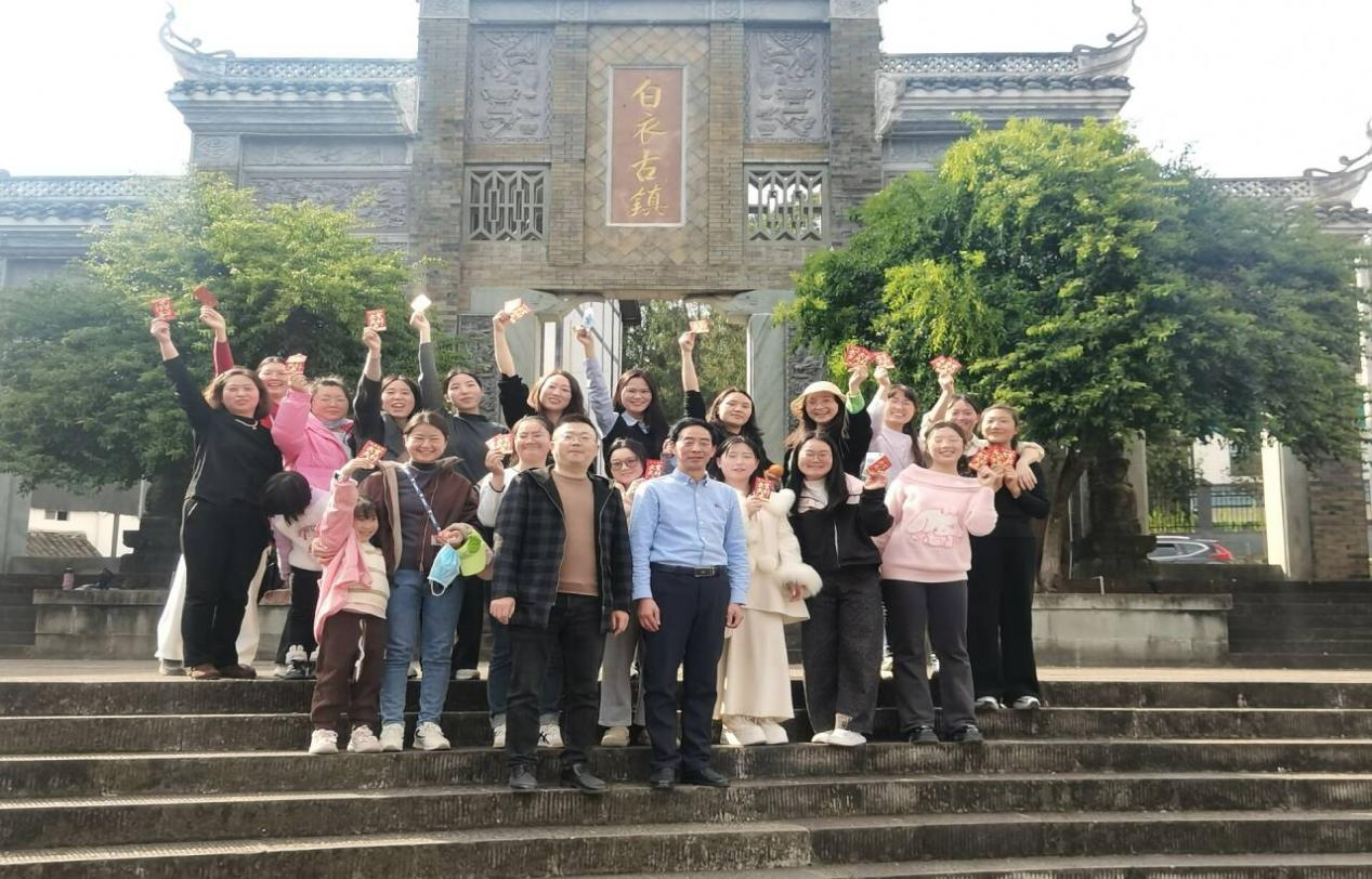 午后,全体女教师统一乘车前往白衣古镇开展户外踏青活动。春日的古镇草木萌动、风光宜人,大家漫步其间,亲近自然、畅谈交流,在感受春日美好气息的同时,进一步拉近了同事间的距离,舒缓了身心。活动最后,学校领导与全体女教职工拍摄集体照,留存下这份珍贵的节日回忆。