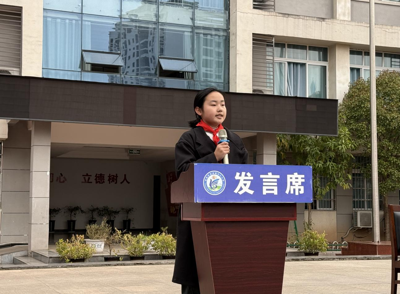 随后,来自6.2班的学生代表李勤勤登台发言,她以真挚的话语分享了新学期的成长目标与奋斗决心,代表全体学子立下勤学奋进、不负韶华的誓言,传递出少年学子向阳生长的蓬勃力量。
