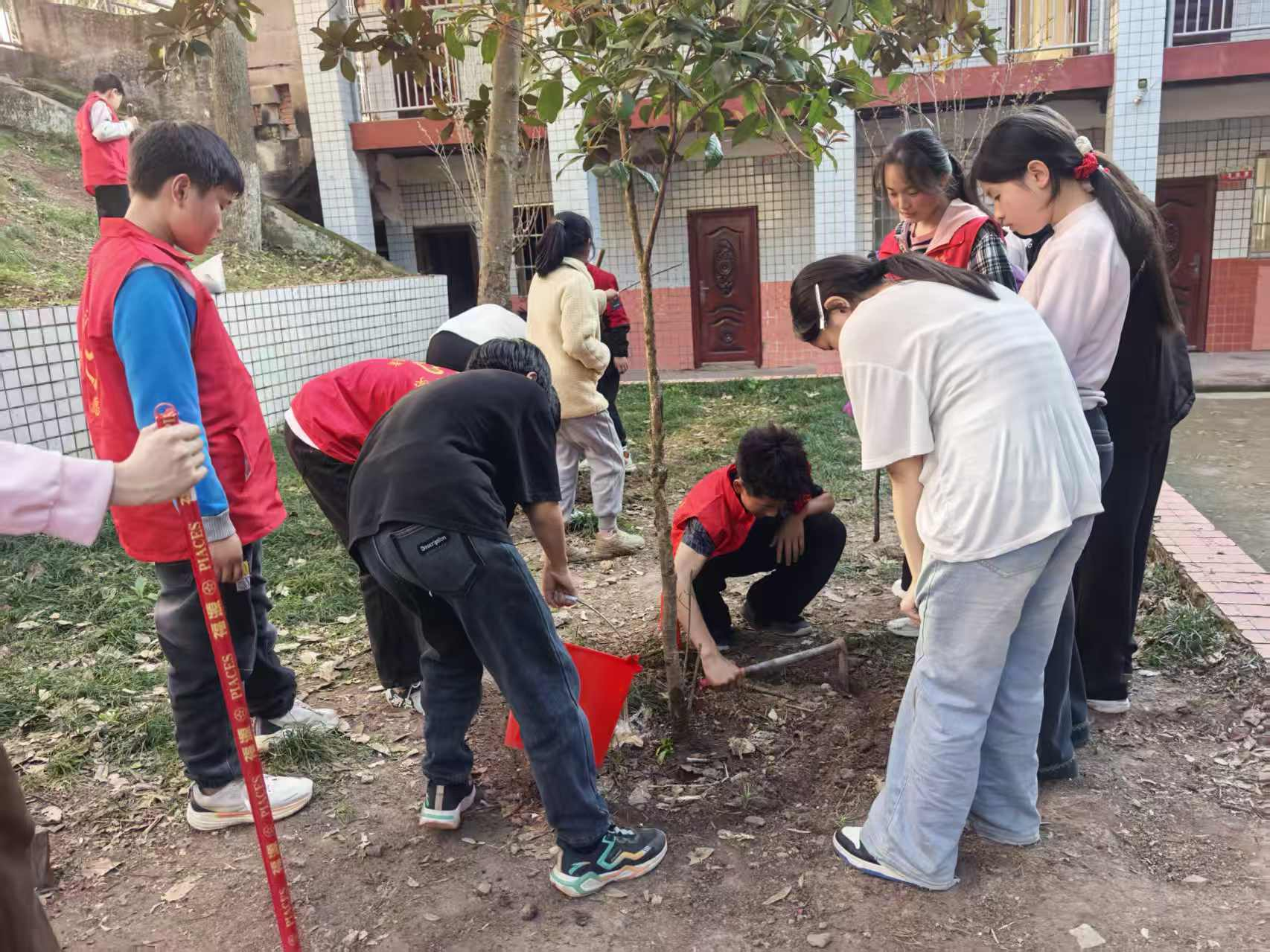 3 月 12 日,平昌县涵水小学开展 “为校园添绿育新苗” 植树活动,以实际行动美化校园、培育环保理念,以劳动为校园披上绿装。