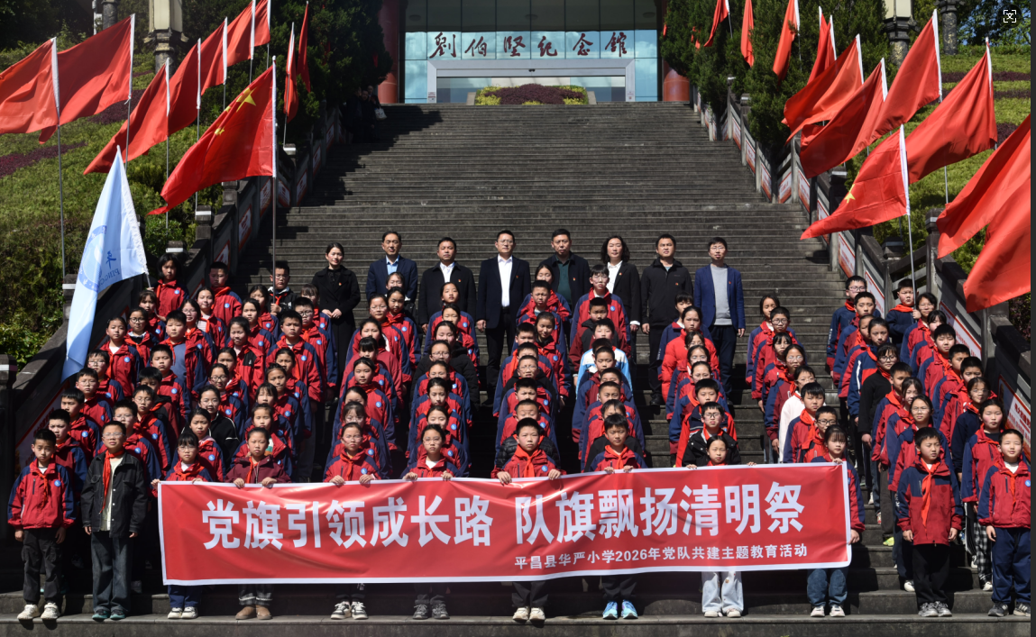 春风送暖,梨花风起。为深切缅怀革命先烈,大力传承红色基因,3月31日,平昌县华严小学组织全体党员教师及3—5年级师生,前往刘伯坚烈士纪念园隆重举行“党旗引领成长路 队旗飘扬清明祭”主题祭扫活动。在庄严肃穆的气氛中,全体人员以最崇高的仪式,向革命先烈敬献花篮,表达无限敬仰之情。