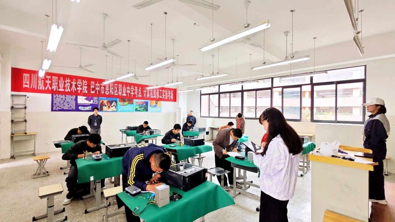 继2025年首场技能考评顺利实施之后,学校再次与恩阳区退役军人事务局、四川航天职业技术学院携手合作,通过精准的课程设计与考评安排,共同为退役军人提供从专业培训到资格考证的全流程支持。 本次考评严格遵循国家职业标准,内容分为理论知识与实践操作两大模块。重点覆盖计算机基础知识、组装维修原理、基础硬件维护、简易故障诊断及客单信息创建等环节,全面检验考生解决实际问题的能力。