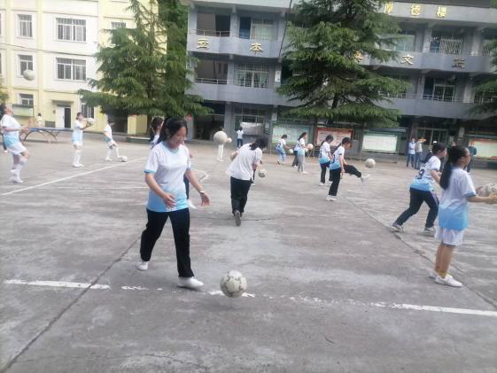 参观小学部学生室外活动项目:女子足球、男女子篮球基本功的展示