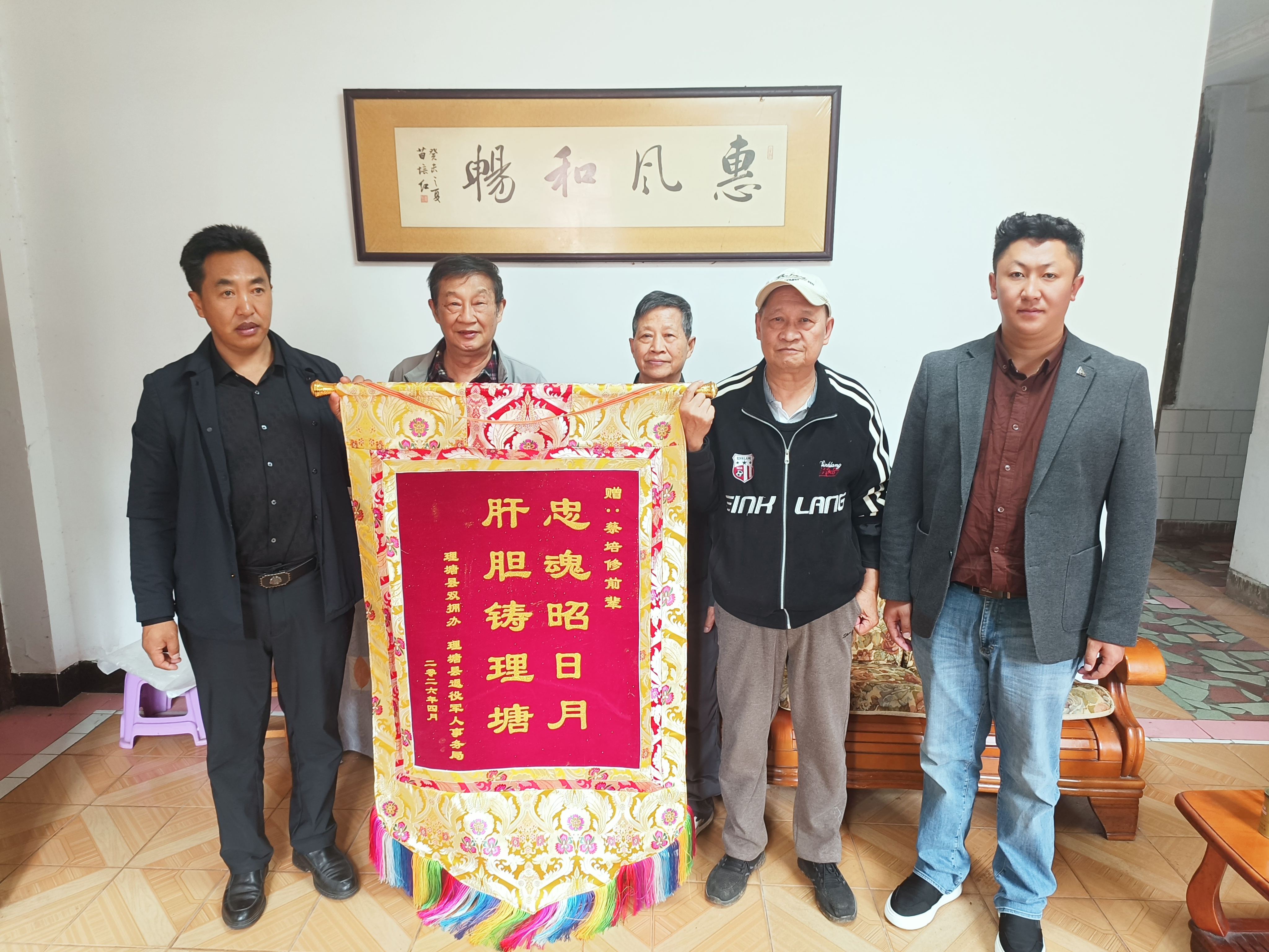 为表达敬意,理塘县退役军人事务局负责人向蔡敏一家赠送了题写“忠魂昭日月、肝胆铸理塘”的锦旗,并现场颁发无偿捐赠荣誉证书。锦旗虽轻,情意千钧;证书虽薄,承载厚重。