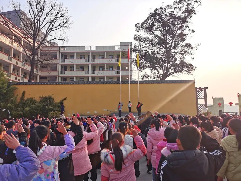 大课间,全体师生在操场隆重集会举行升旗仪式,安保主任对全体学生进行安全集中教育,从安全“十防”告诫学生生命只有一次、健康不能重来,并针对交通安全、烤火安全、心理健康等方面再作提醒。德育主任对学生进行了就餐就寝、清洁卫生、学习生活习惯等养成教育,指出文明良好的行为习惯是成功的必经之路,并鼓励学生要努力践行社会主义核心价值观。