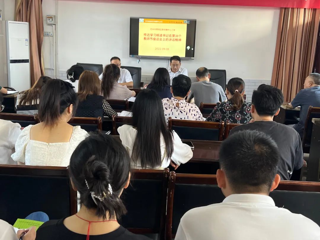 9月8日,茶坝小学组织全体教职工学习了杨波书记在第38个教师节座谈会上的讲话精神。