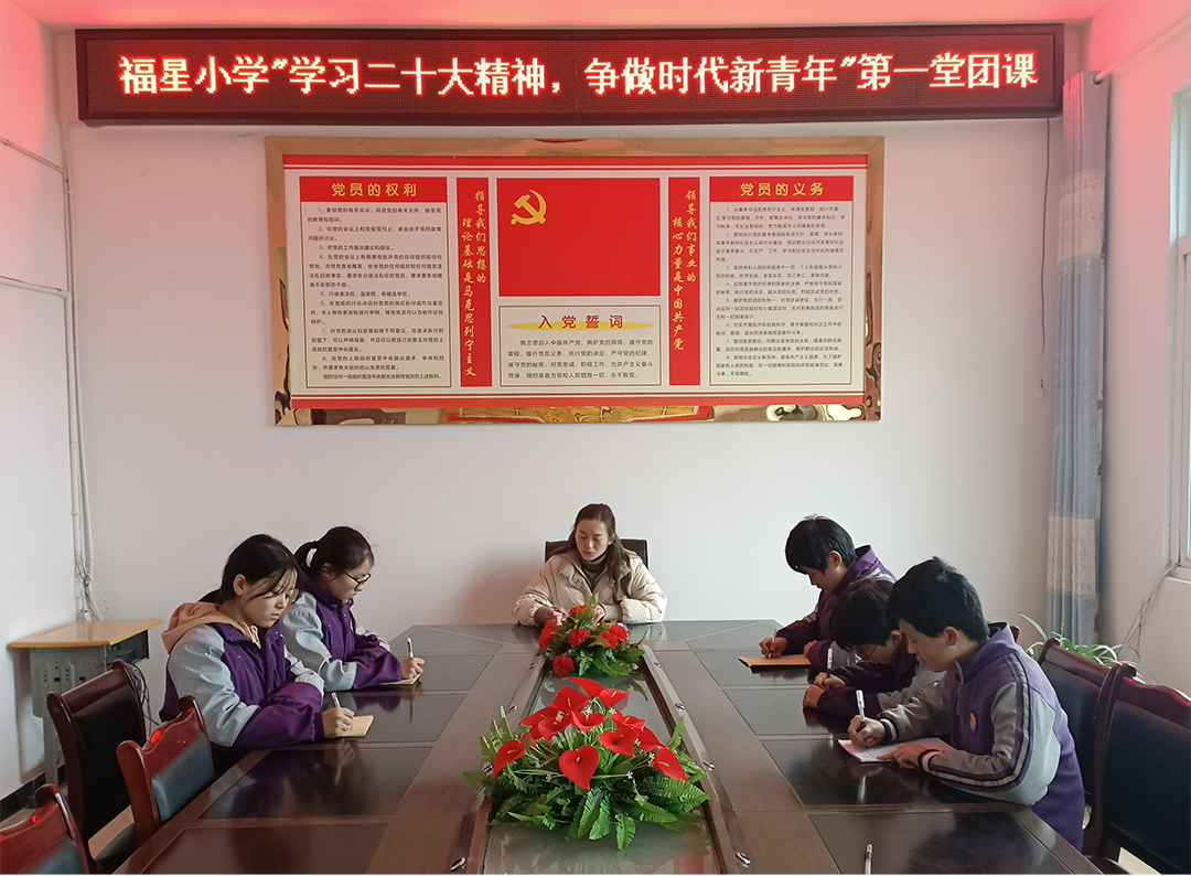 为培养广大团员青年学生爱国、爱党、爱社会主义的家国情怀,增强青年学生的责任担当意识和历史使命感。2023年2月14日,福星小学团支部开展了“学习二十大精神,争做时代新青年”为主题的团课活动。