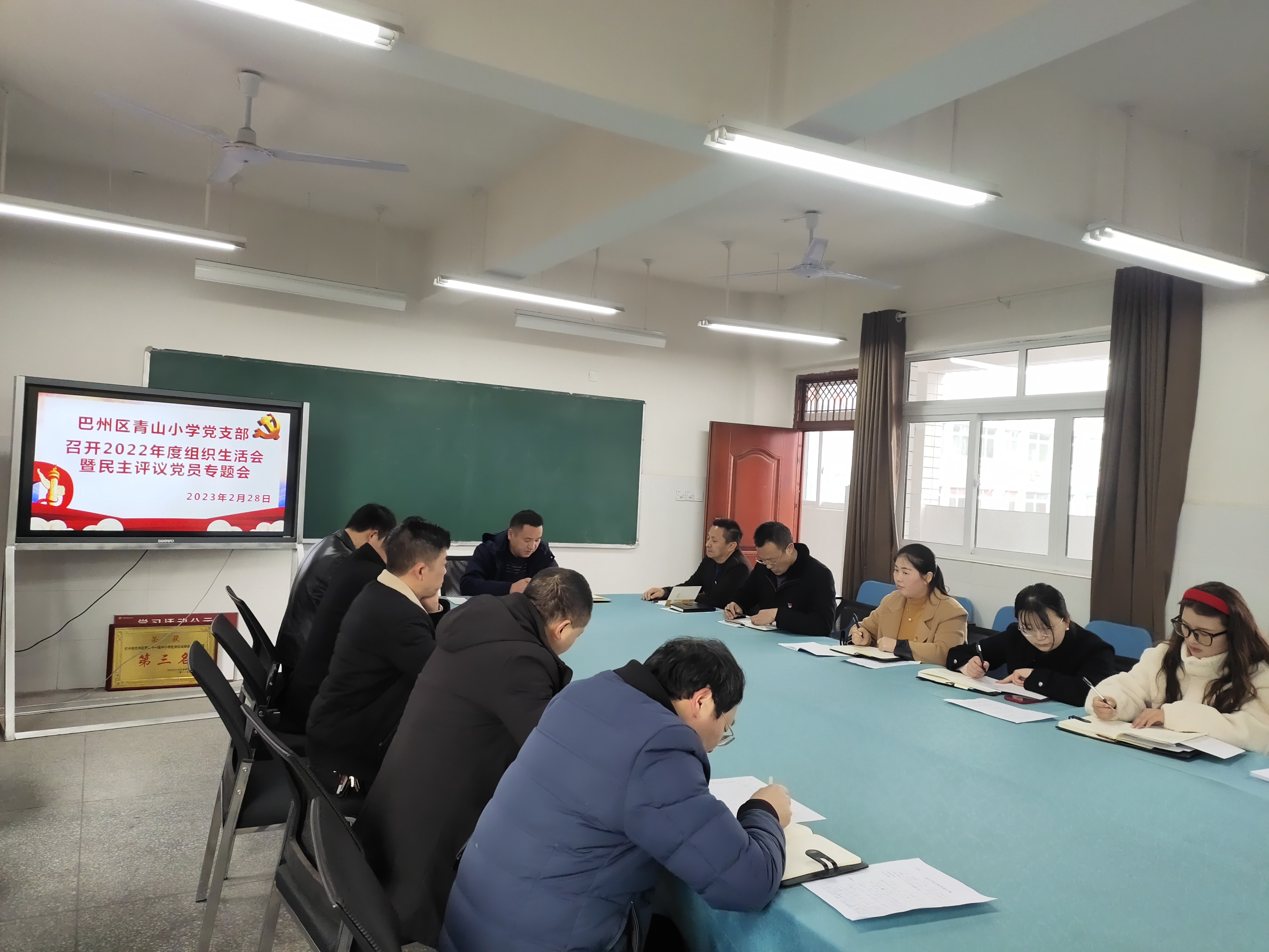 2023年2月28日,青山小学党支部召开了2022年度组织生活会暨民主评议党员会议。会议由党支部副书记彭秋实主持,全体党员同志参会。