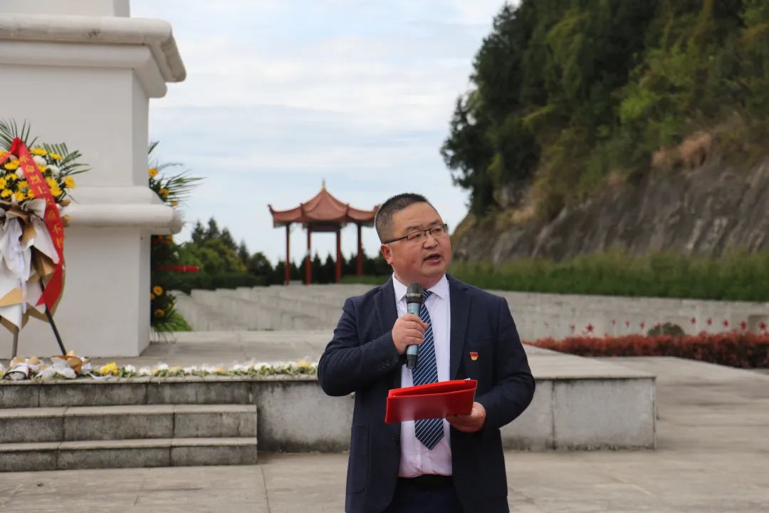 局党组成员、机关党委书记张果同志作了题为《缅怀革命英烈·传承红色基因》的讲话。他先是带领师生回顾了巴中先烈在翻身解放和民族复兴征程中浴血奋战的光辉历史,再是宣讲了南岳山建园初衷,希望学生们饮水思源,不忘先烈们的英勇献身。同时,他以三个关键词“珍惜、修身、担当”寄语学生,希望学生们铭记历史、把握现在、开拓未来!
