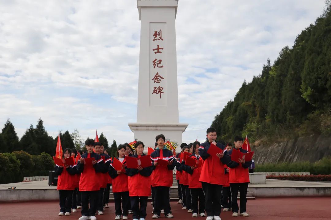 翠柏青松 鲜花寄哀思,初心传后人。党员教师代表在革命英雄纪念碑前,面对党旗举起右手重温入党誓词,用铮铮誓言深情缅怀革命先烈的英雄事迹,表达对革命烈士的无限哀思。伴英烈,清明祭扫寄哀思。为进一步加强青年爱国主义和革命传统教育,引导青少年自觉传承革命精神和红色基因,巴中市恩阳区第二中学联合巴中市恩阳区花丛初中开展了“清明祭英列”系列活动。党员代表、青年团员、学生代表共计五十余人参加,局党组成员、机关党委书记张果同志参加活动。