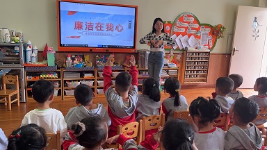 活动形式多样化。采用幼儿园晨间谈话、班级主题活动、国旗下说“廉”、承诺书签“廉”、师幼阅读打卡等活动形式,把廉洁、诚信、公正、俭朴等优良品德的养成,贯穿于师幼一言一行之中。如:对幼儿诚实正直、公平竞争等方面的教育时,在班级里的“道德模范”“我是小帮手”“小班长” 等评选工作都应采取“公平、公开、公正”的原则,强调提倡取长补短,公平竞争。