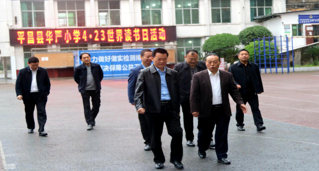 平昌县教科体局党组成员、副局长周平一行莅临华严小学指导工作