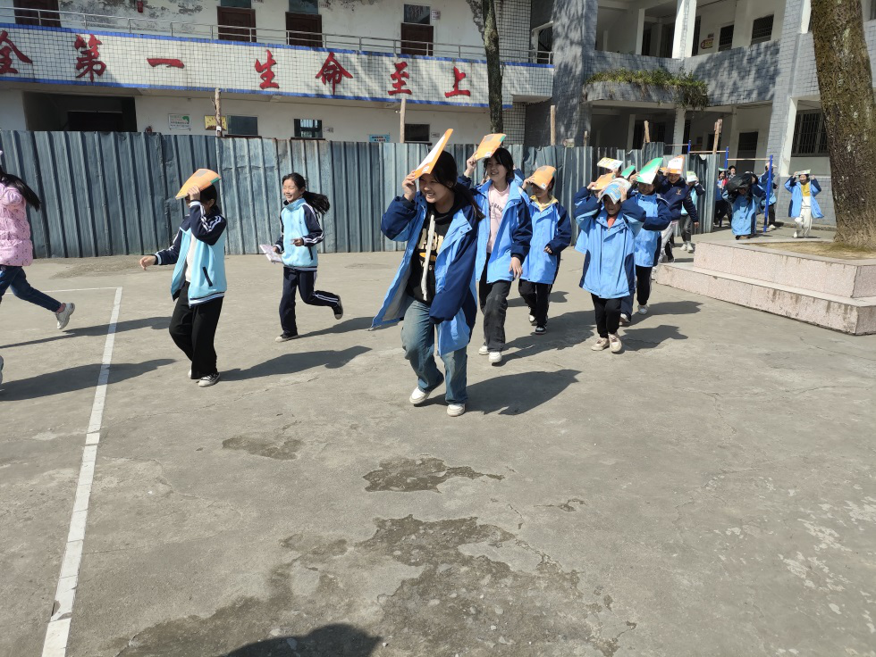 随着地震警报声响起,防震疏散演练正式开始。在各班班主任的组织引导下,所有学生双手交叉护住头部,按照逃生演练方案设定的逃生路线,快速、有序地撤离到学校操场上。整个演练过程按预案进行,既紧张,又有条不紊。到达安全区域后及时清点本班学生人数,确认学生无任何伤情后,向董立功主席汇报各自班级学生撤离的情况。在全体师生的团结协作下,本次防震演练顺利完成。