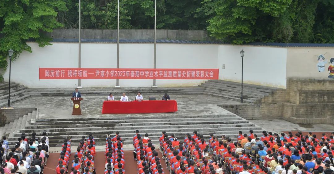 为总结2023年春学期期中教育教学活动中取得的成绩,树立标杆,表彰先进,激励学生勤奋求知,奋发图强。5月6日上午,尹家镇中心小学召开了期中学业水平监测质量分析暨表彰大会。本次大会由副校长苟军主持。