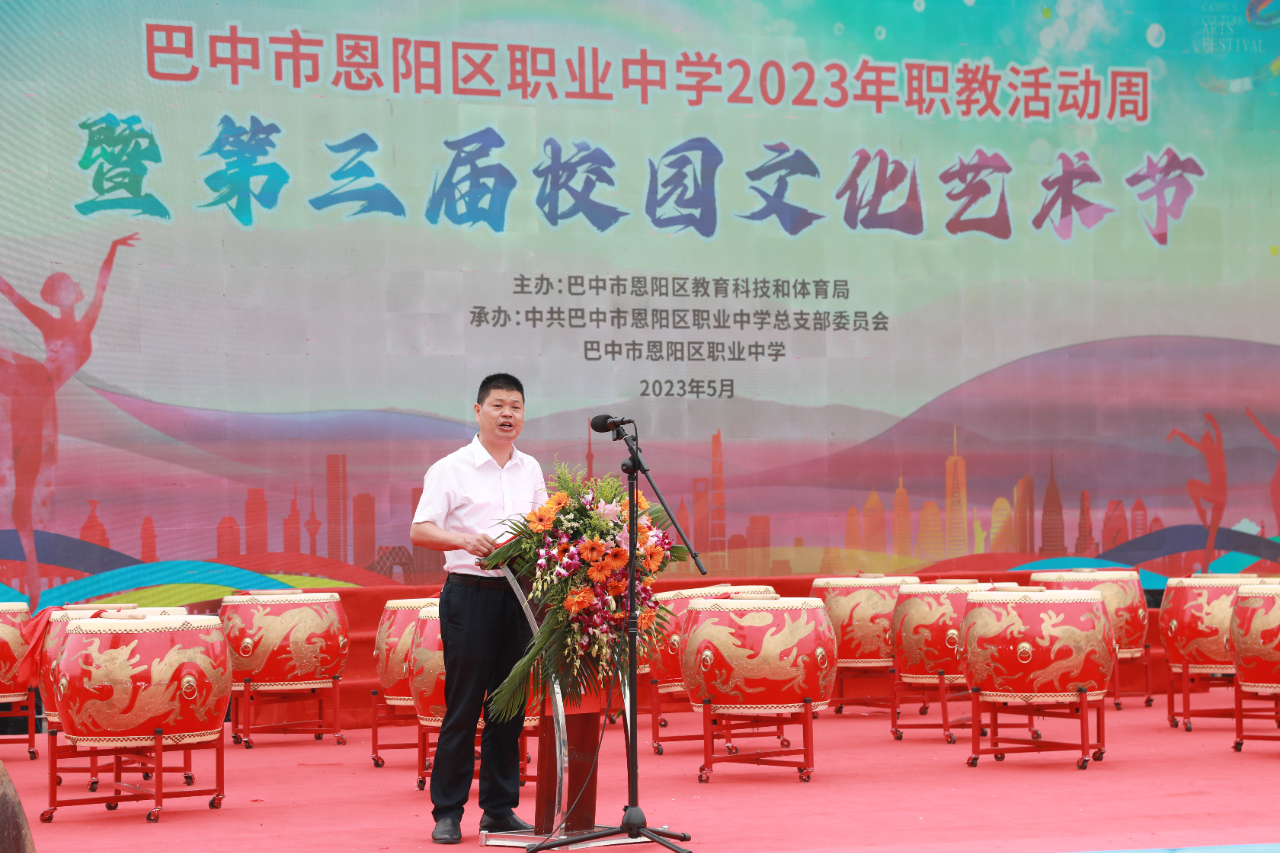 他指出了此次职教活动周举办的深远意义,介绍了区教科体局在完善职教体系、深化产教融合、立足国际视野等层面取得的长足进步,肯定了恩阳职中近一年来在党建引领发展、四质工程实施、校企合作推进等方面摘获的瞩目成绩,并向全体师生学子寄予新的希望。