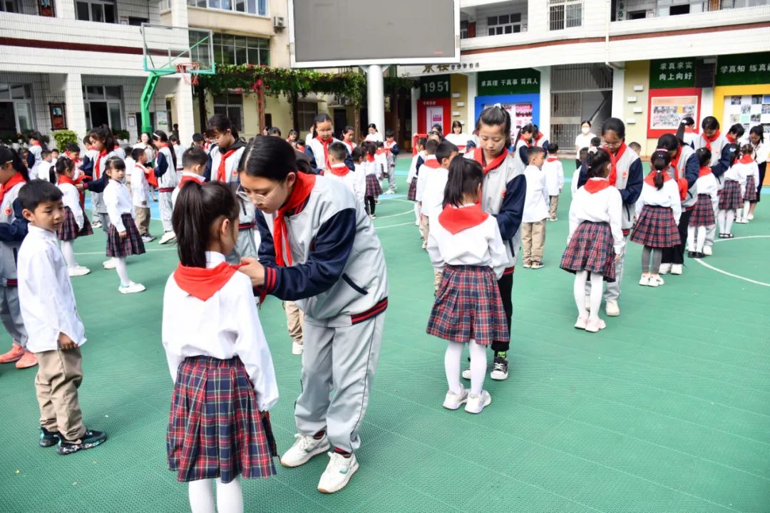 鲜红的队旗迎风飘扬,嘹亮的队歌响彻校园。为增强学校少先队组织力量,引导队员们继承和发扬少先队的光荣传统,增强少先队员的荣誉感和责任感,2023年5月24日下午,巴中市巴州区第三小学校的操场上队旗飘飘,领巾飞扬,370名新队员迎接这一激动人心的时刻——一年级少先队员入队仪式。