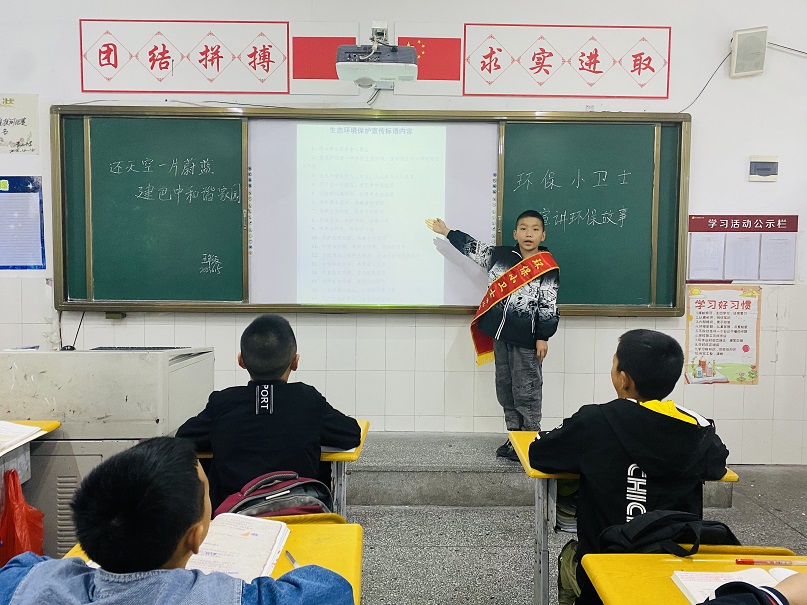 青山小学各班级组织开展“保护环境 你我同行”主题班会,老师们深入浅出,向同学们介绍了世界环境日的由来、十大环境问题等内容,教导同学们从自身做起、从身边小事做起,减少浪费、节约资源,倾情动员全体同学积极参与环境保护。“环保小卫士”化身为小小环保宣传者,用朗诵、演讲、歌曲等多种形式,呼吁人们爱护环境、保护环境。