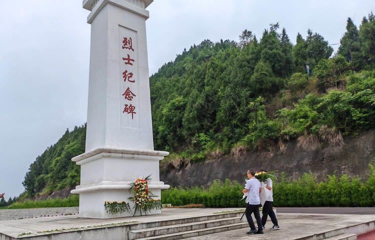 缅怀革命先烈 传承红色精神。在恩阳区花丛镇的南岳山烈士陵园,两位党员同志托起花篮,迈着有力的步伐缓缓登上纪念碑台阶,向革命先烈敬献花篮、整理挽联,现场气氛庄严而凝重。